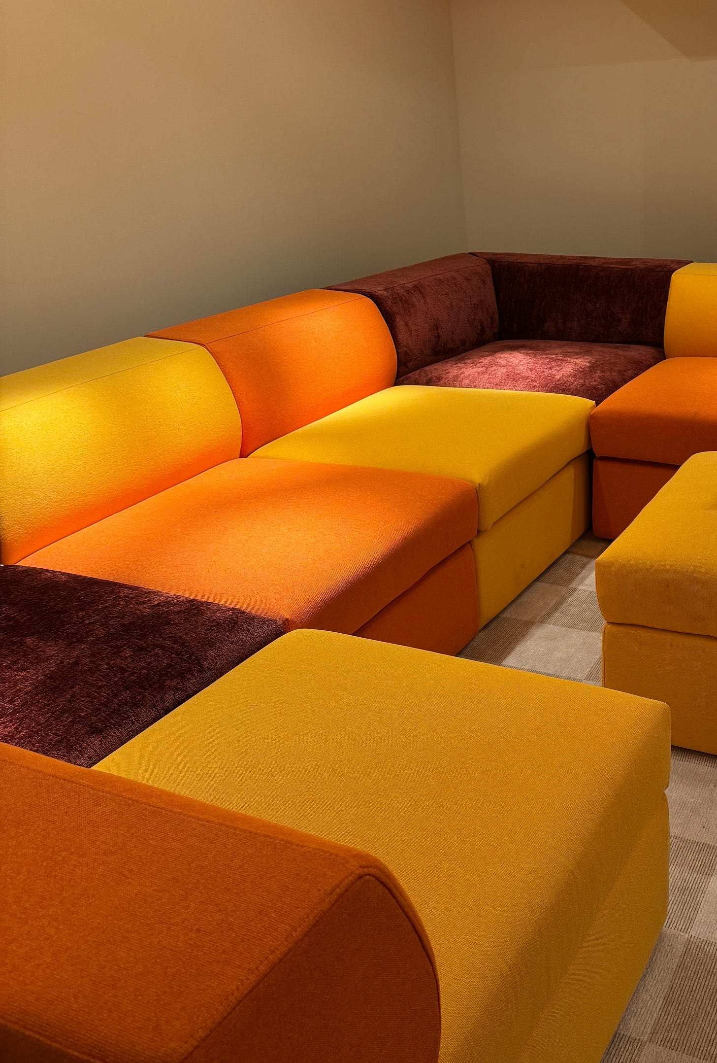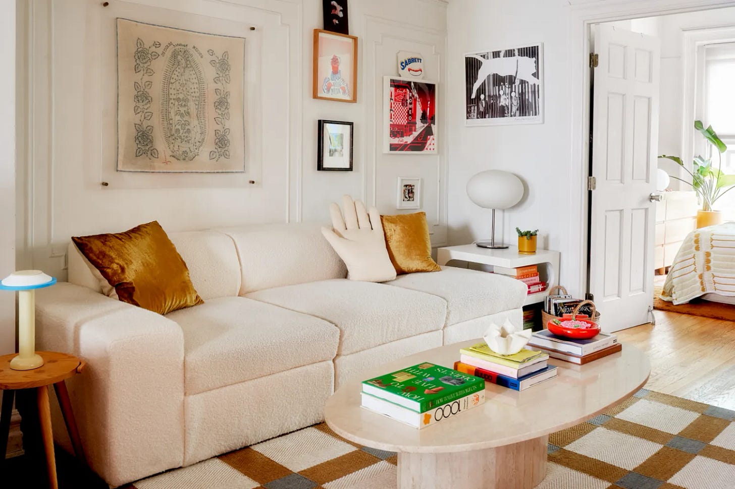 About my completely modular Cozey sofa for Domino, then I went to the Cozey pop-up in Flatiron to see my exact style (the Atmosphere) in a color blocked arrangement that had me rethinking our white bouclé. I really do love this sofa—so much that we just got the long ottoman to add on to it. If they offered a baby blue fabric (like this), I’d switch to those covers in a heartbeat.