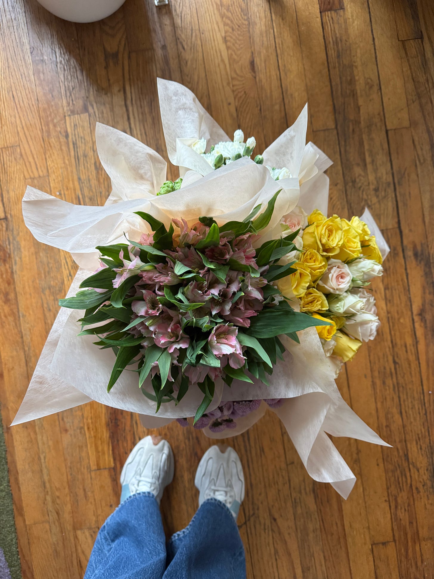 Multiple bouquets courtesy of The Bouqs, who I recently learned will send you an entire bucket of buds (I got roses, carnations, snap dragons, among other draping greens) that you can DIY into all kinds of arrangements. I brought half to a gossip party. Another bunch to friends hosting us for dinner. And I still had enough left over for three full arrangements at home. It’s like taking a trip to the flower market, except you didn’t. And in a time where everything feels out of control, it felt nice to be at the helm of something—even if it was just which flower went where.